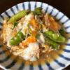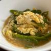 納豆アレンジ 絹さやの卵とじ炒めのせて