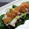 豆苗とつるむらさきの葉と豚しゃぷ大根お