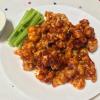 甘醤油が浸みた豚肉、厚揚げ、カリフラワ