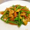 にんにくの芽とエリンギ、豚肉のコチュジ