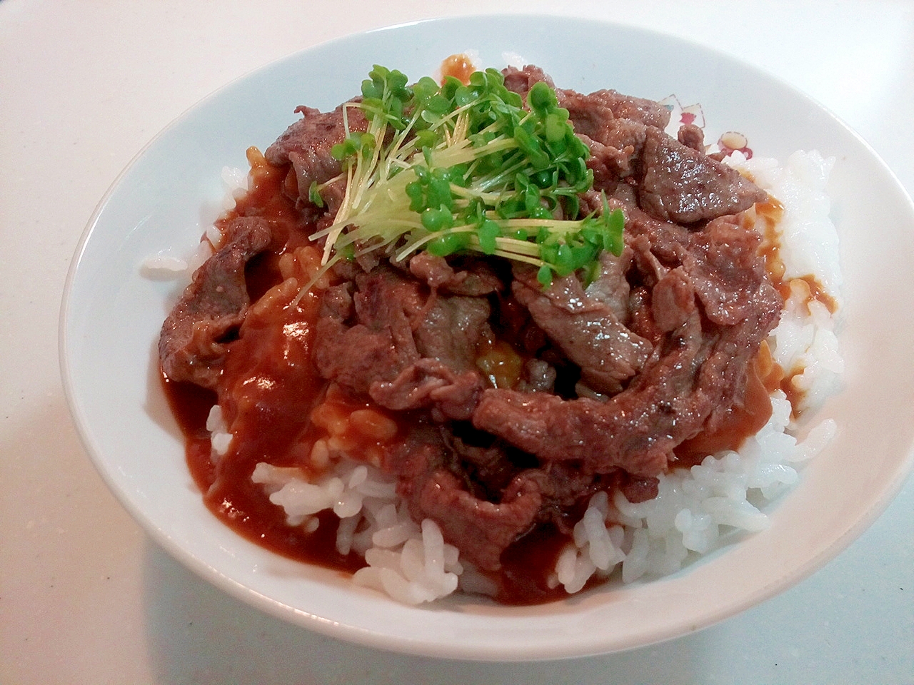 :炒めた牛肉をドーンとのせた、カレーライスです♬