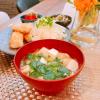 モロヘイヤと豆腐と油揚げのお味噌汁☆