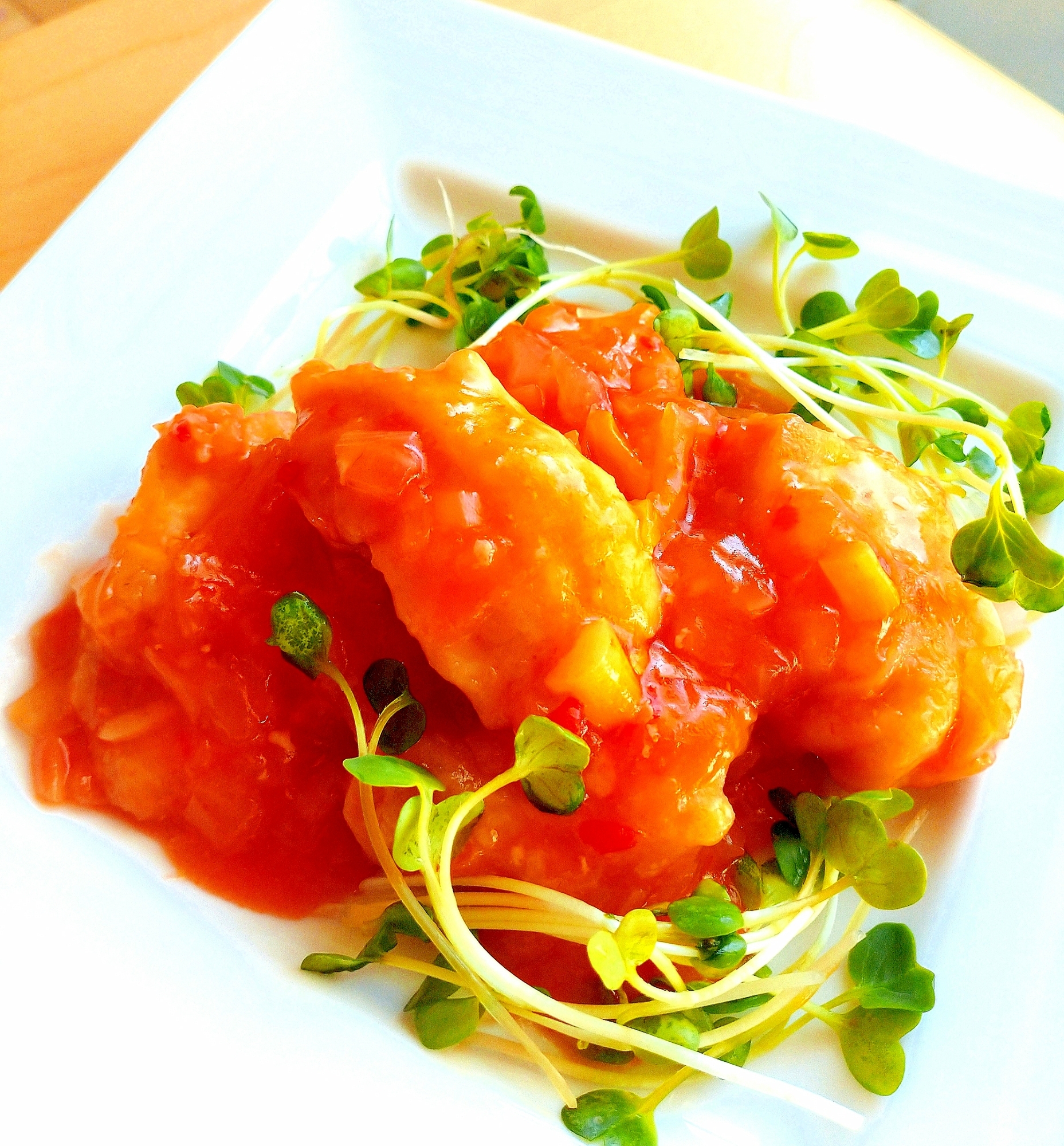:プリプリのえびの食感がたまらない、スイートチリソースを使ったいつもと一味違うエビマヨ。