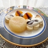 フルーツみつ豆の缶詰で白くまくん風シャ