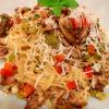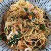 豚肉と水菜とブナピーのパスタ、大根おろ