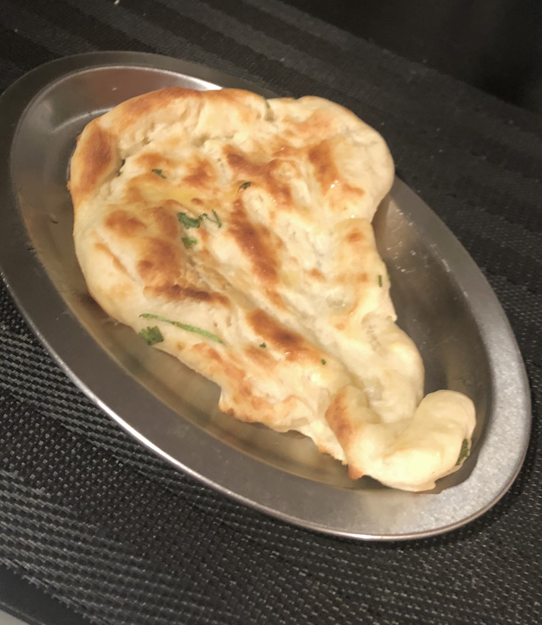 :ナンミックスだから、簡単に家でもできます^ - ^ 写真はインドカレーに使ったコリアンダーをトッピング、バターを塗ってしあげています♪