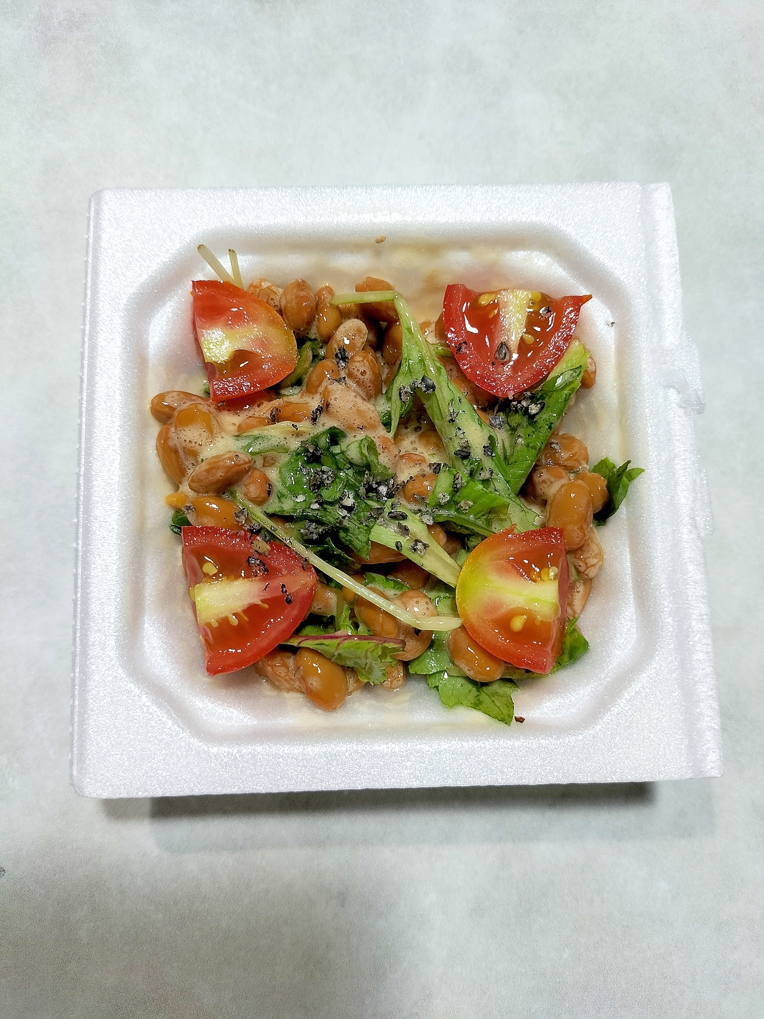 ベビーリーフとフルーツトマト入り納豆