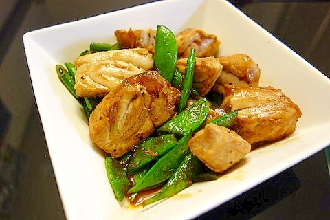 レシピタイトル:カジキマグロとスナップエンドウのバター醤油炒め