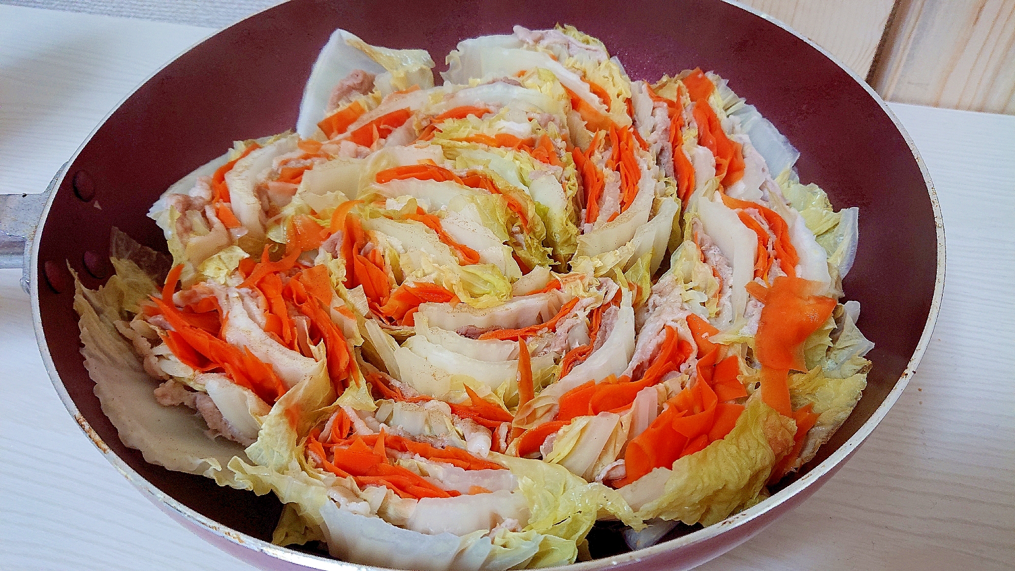 レシピタイトル:白菜・人参・豚肉のミルフィーユ鍋