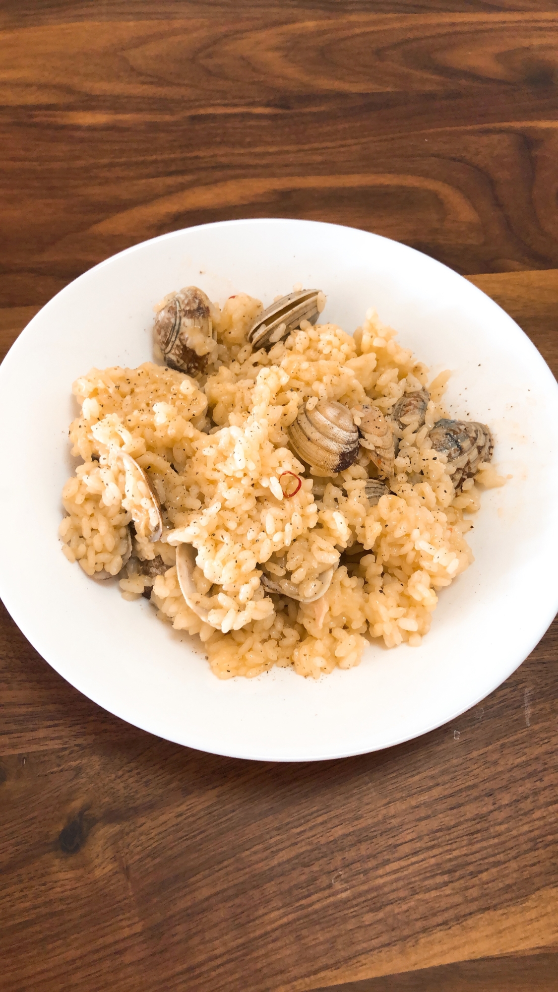 :アクアパッツァで残ったおいしいだしのでたスープで生米からリゾット作り! ベタベタにならないように本格的な味になります!!