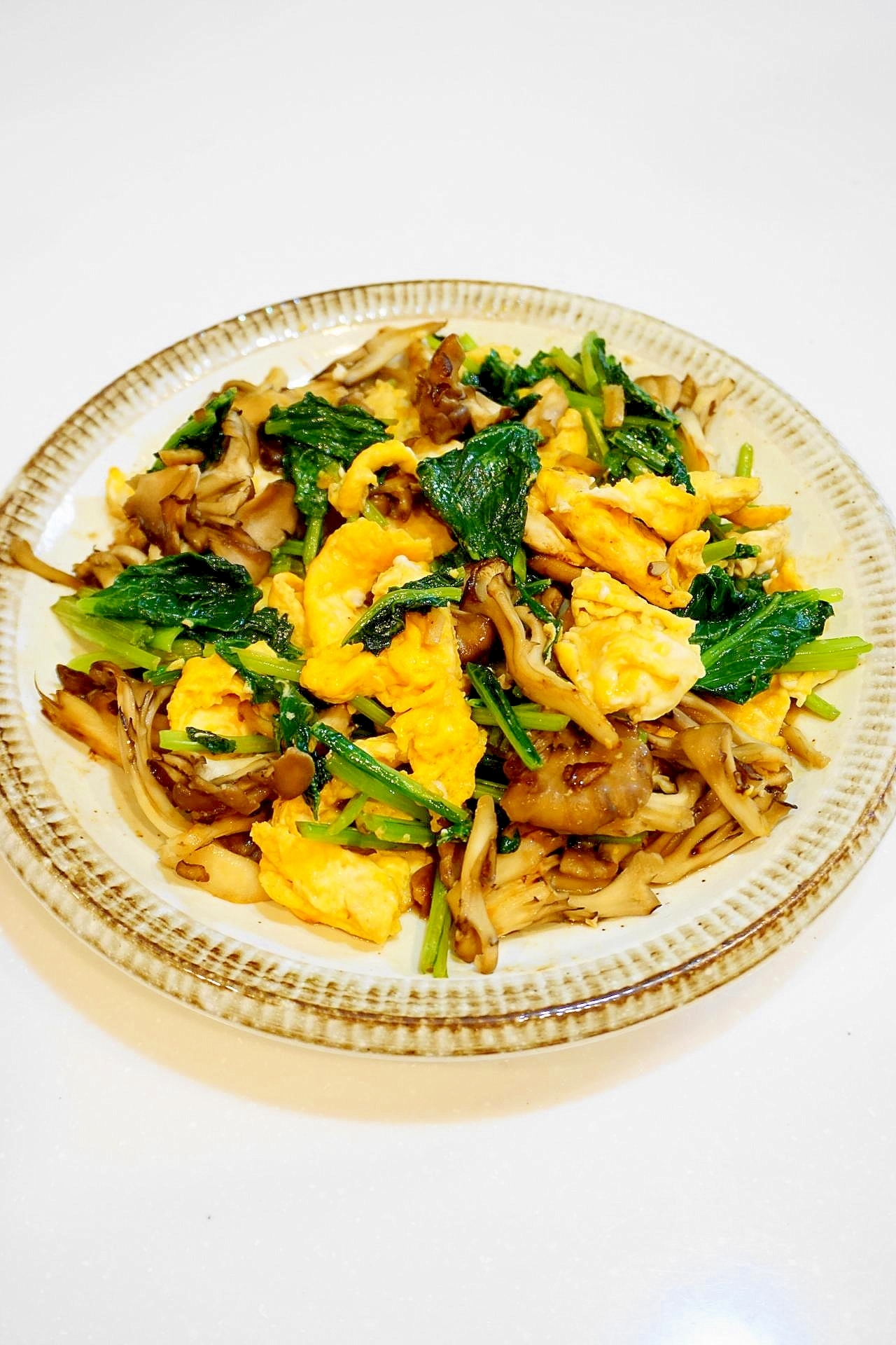 舌も喉もとろける味!小松菜と舞茸と卵の中華炒め