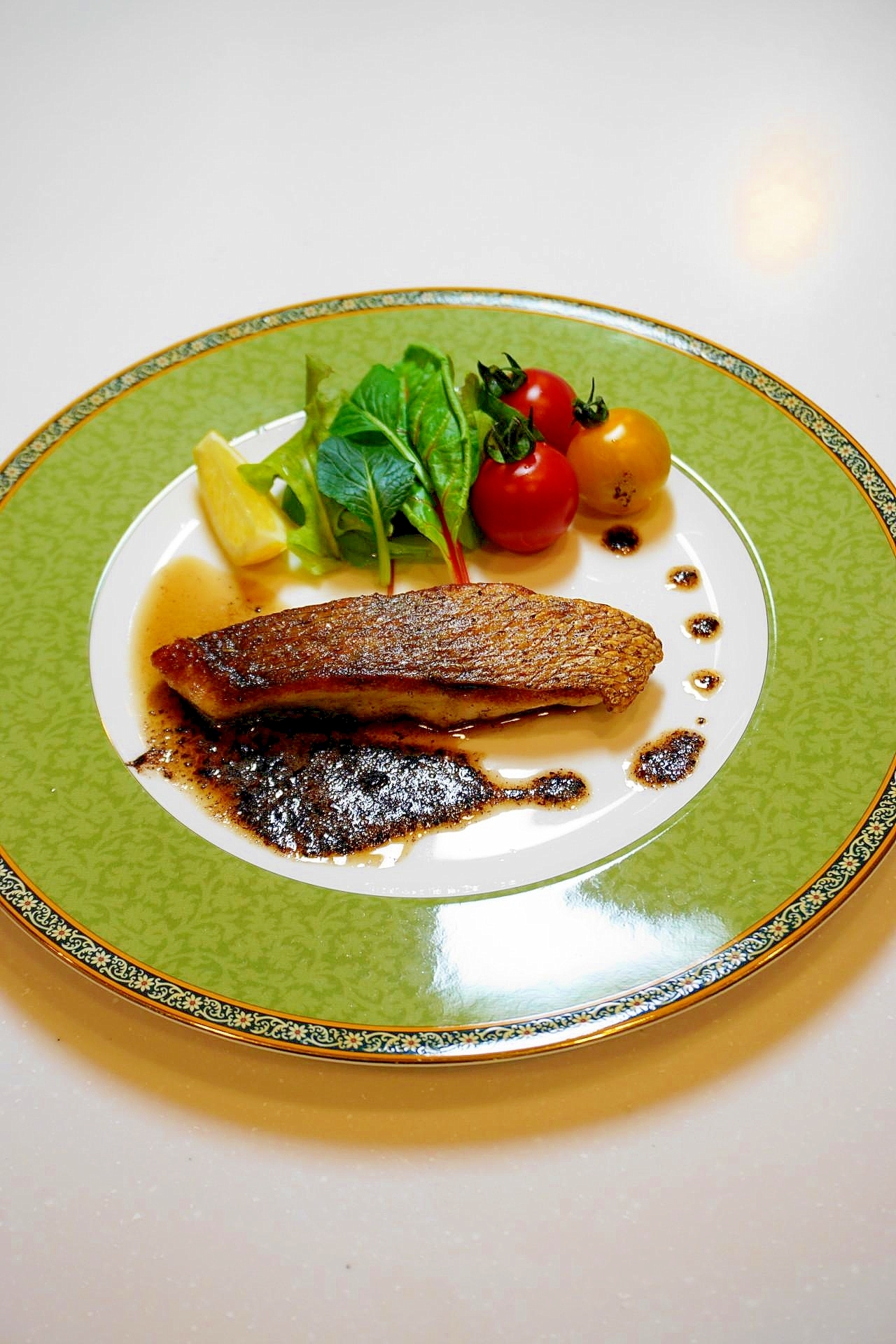 :皮カリッ身フワッ!真鯛のポアレ バルサミコソース