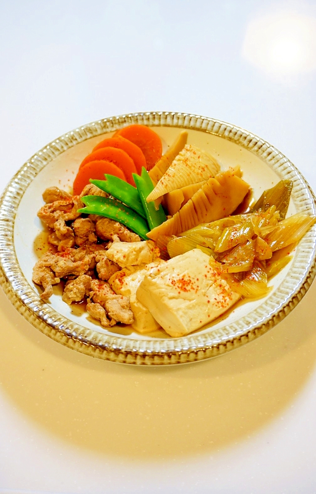 レシピタイトル:豚こま肉でも美味しく!タケノコと豚肉の肉豆腐