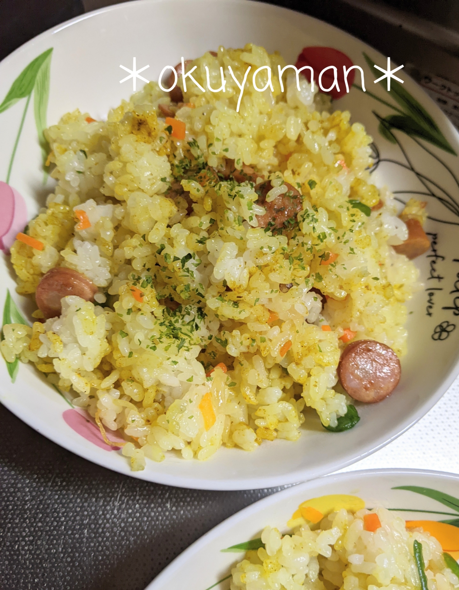 :家にある材料を使ってピラフを作りました。カレー味です。