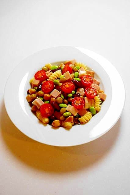 簡単~美味!ビーンズとハムとトマトのマカロニサラダ