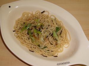 レシピタイトル:ちりめん山椒と塩昆布の和風パスタ