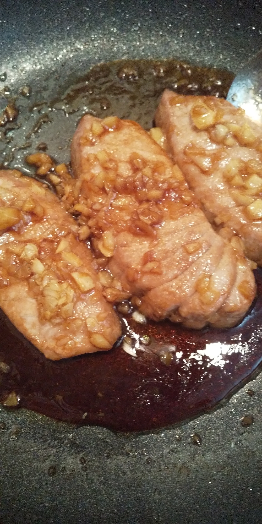 レシピタイトル:ニンニクたっぷりのマグロ腹身ステーキ