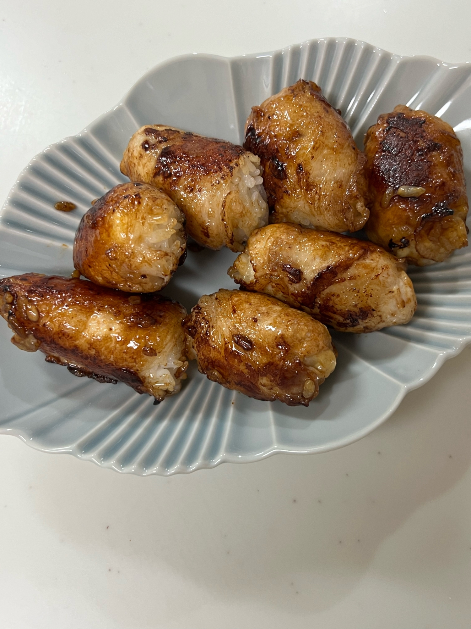 レシピタイトル:豚しゃぶしゃぶ用で作る♪一口肉巻きおにぎり