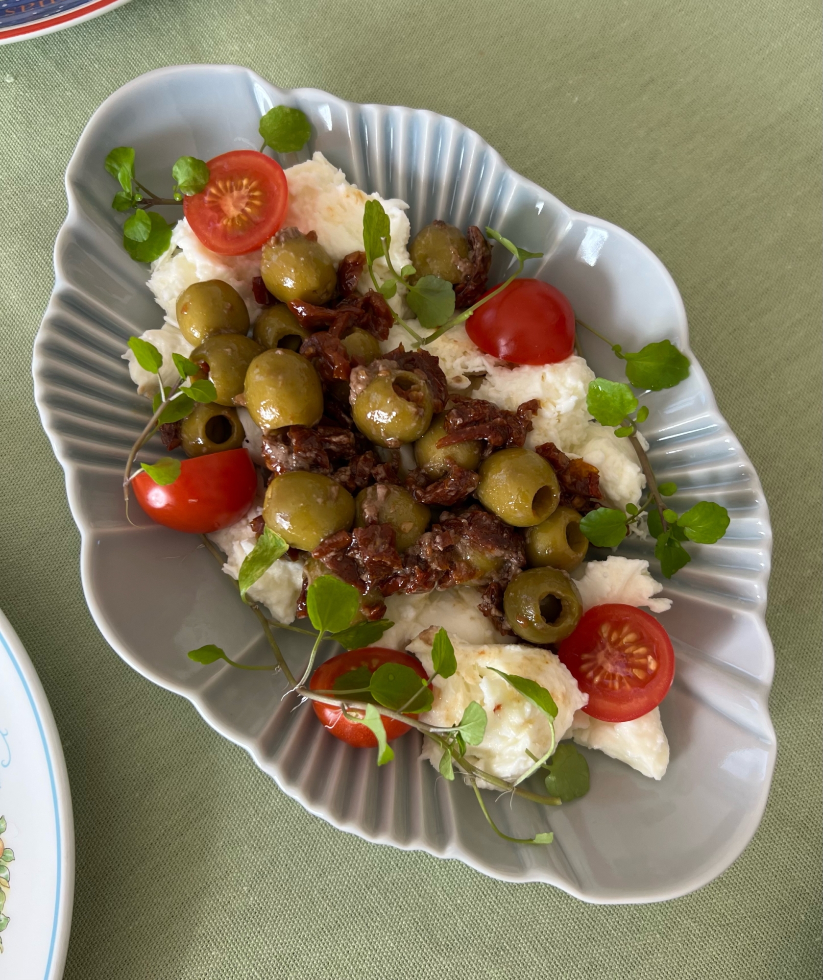 :モッツァレラチーズとドライトマトとオリーブのサラダ