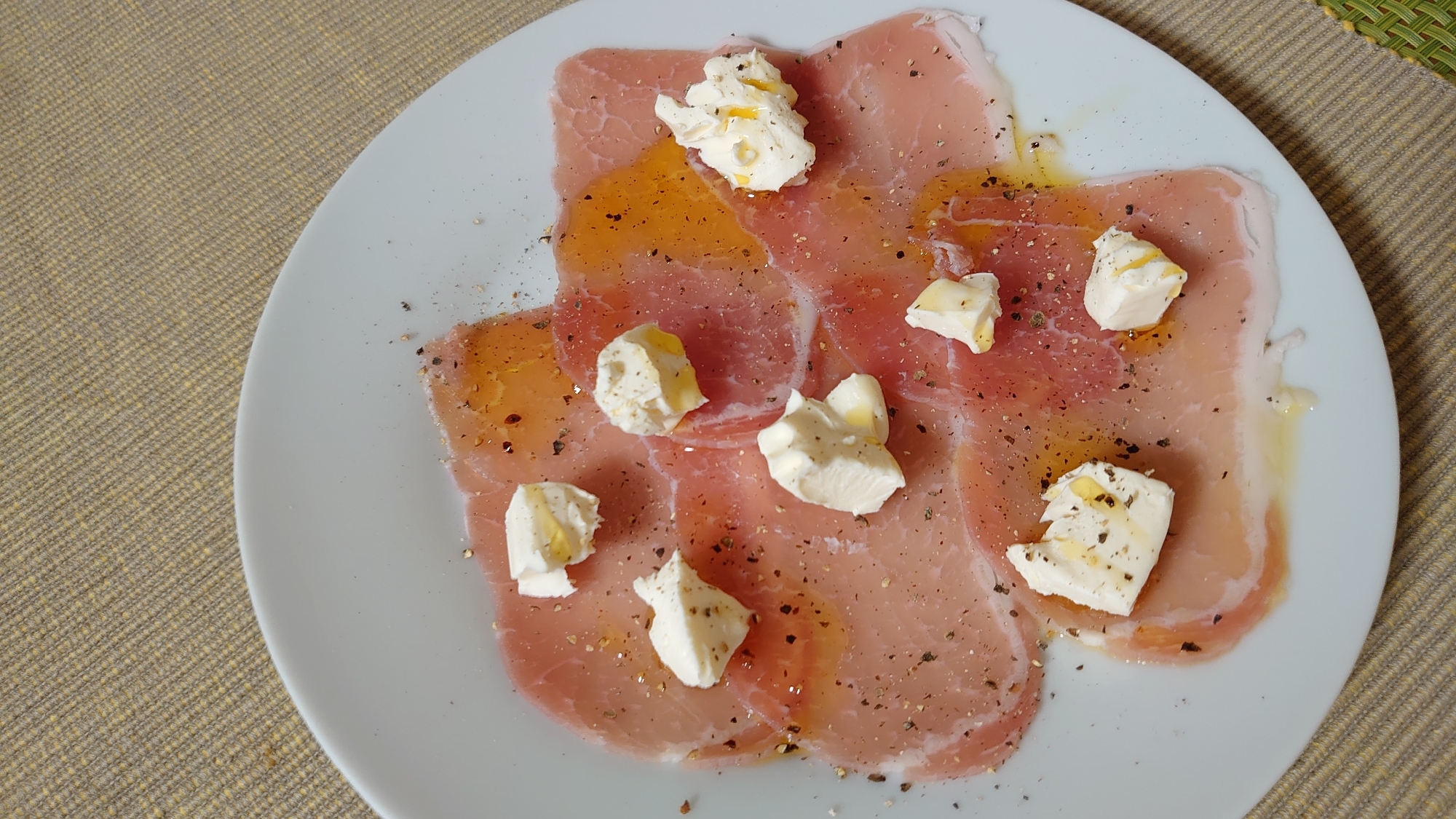 :生ハムてクリームチーズを巻くことが多いですが、今回は手抜きで、生ハムの上にチーズをのせてみました\(^o^)/