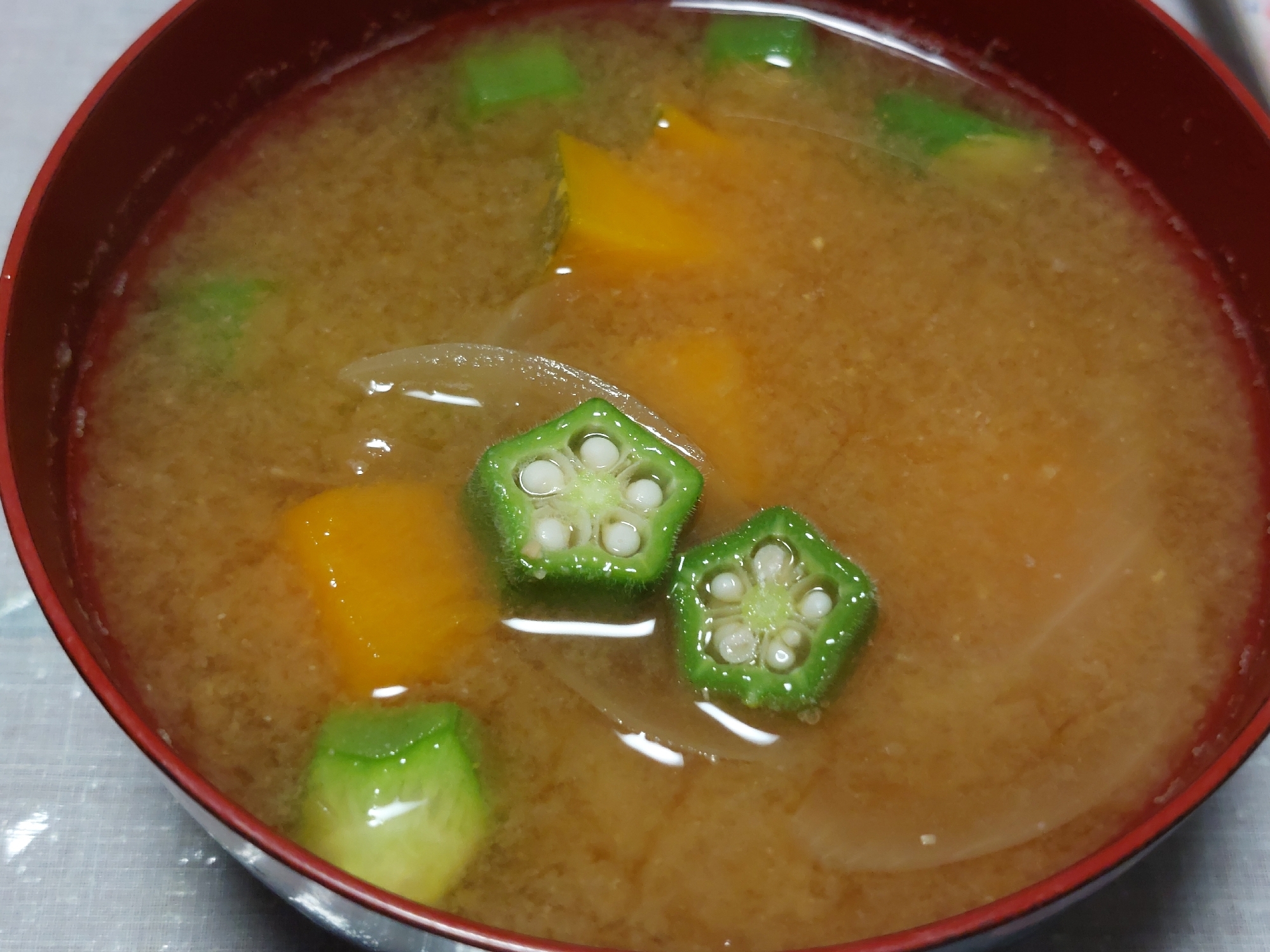 かぼちゃとオクラと玉ねぎのお味噌汁