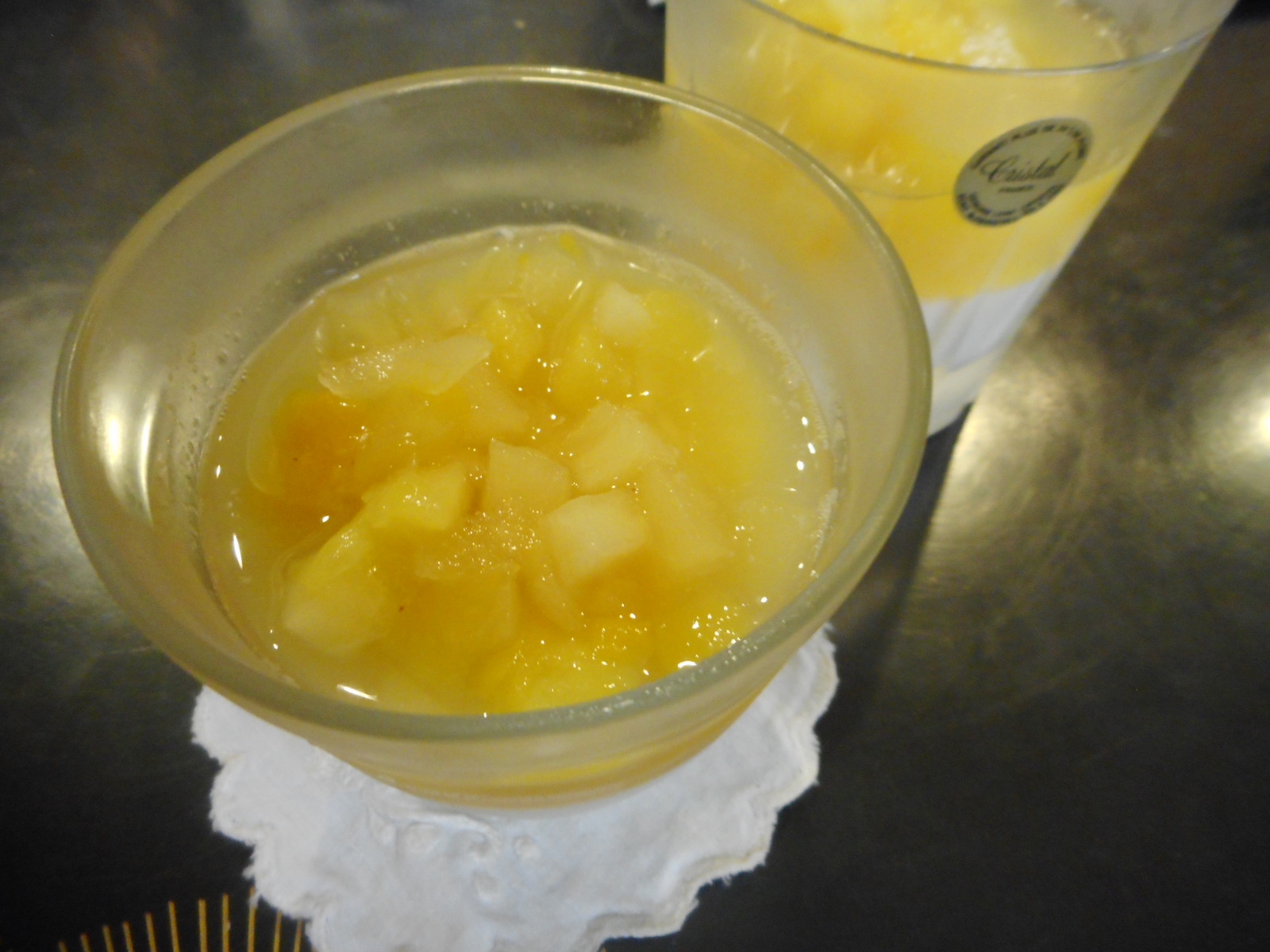 レシピタイトル:りんご、マンゴー、パインとミルクの二層ゼリー