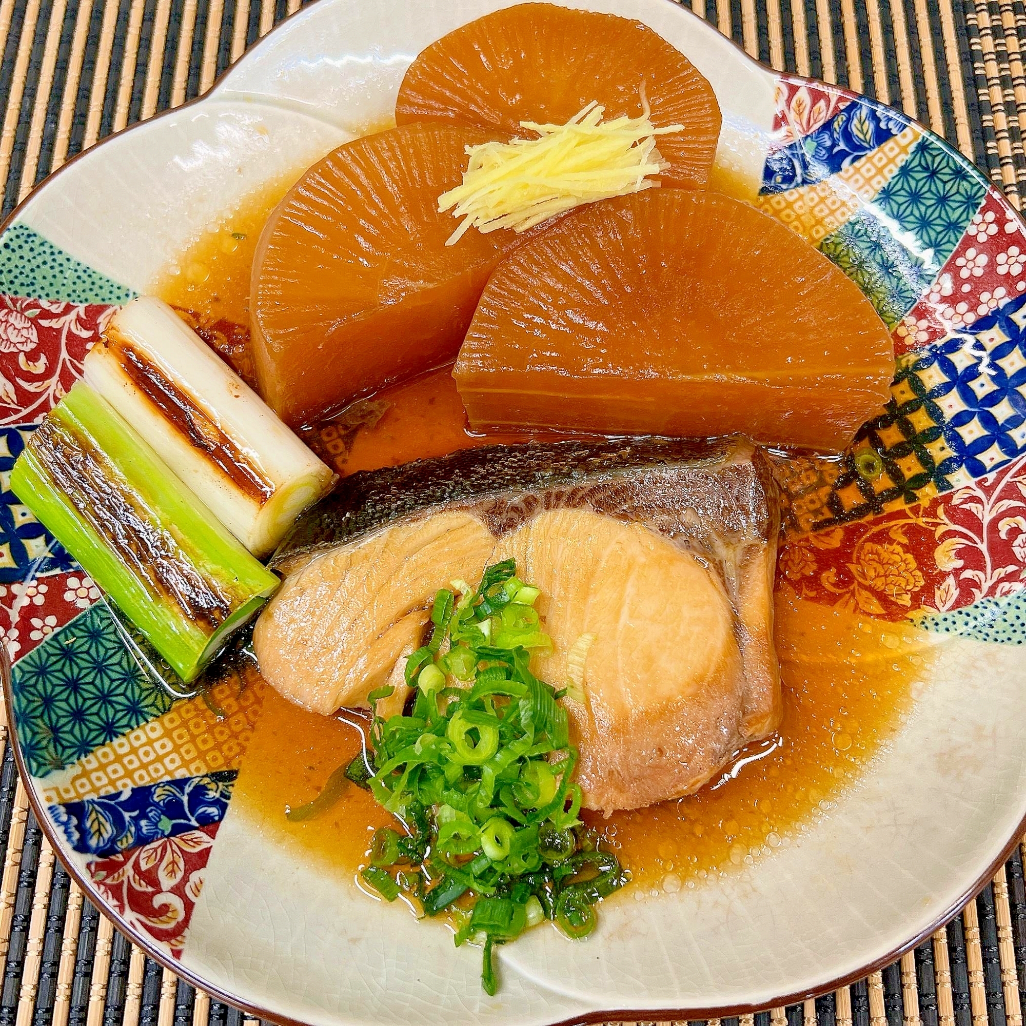 レシピを考えた人のコメント:圧力鍋で作るので、大根がトロトロです。あらを使わず切り身なので、下茹で不要です。生姜で、臭みを軽減しました。土台を大根で作ってぶりを乗せると、煮崩れしませんよ。