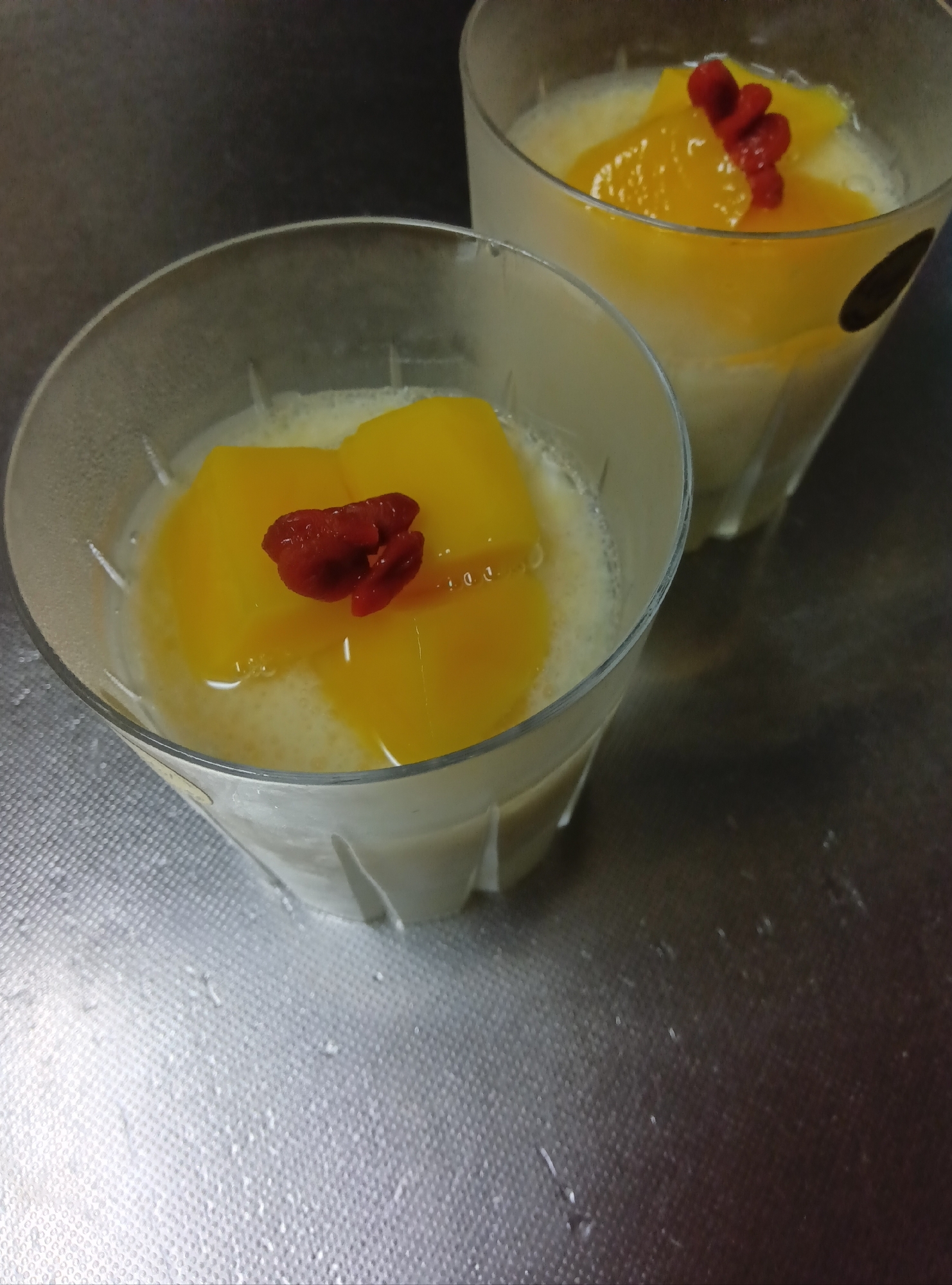 レシピを考えた人のコメント:マンゴーをのせた杏仁豆腐です。
