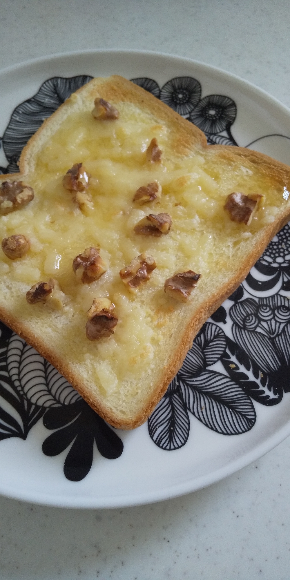 レシピタイトル:クルミのせ♪はちみつチーズトースト☆