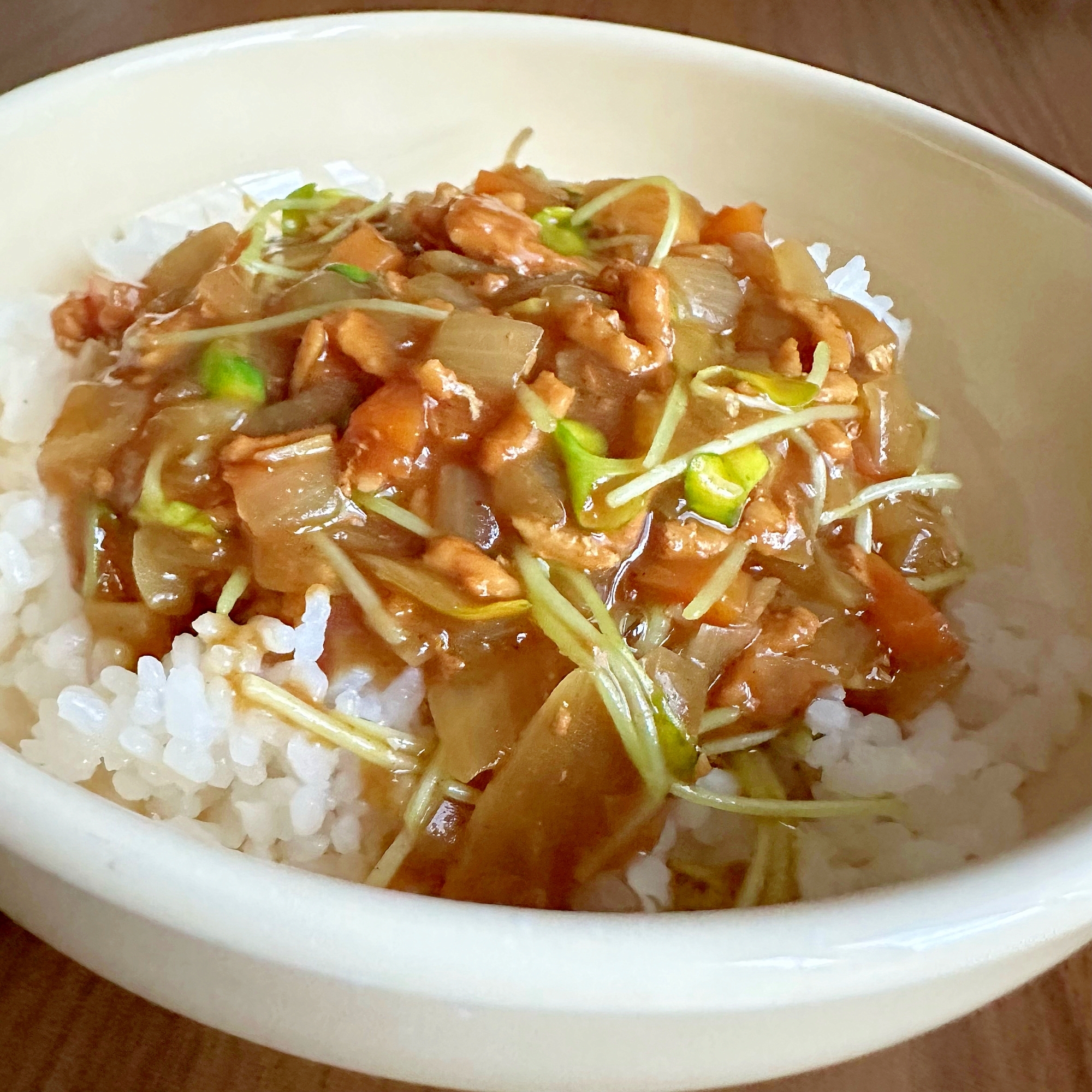 レシピタイトル:時短!ひき肉とかいわれのカレー⋆⸜ ⚘ ⸝⋆