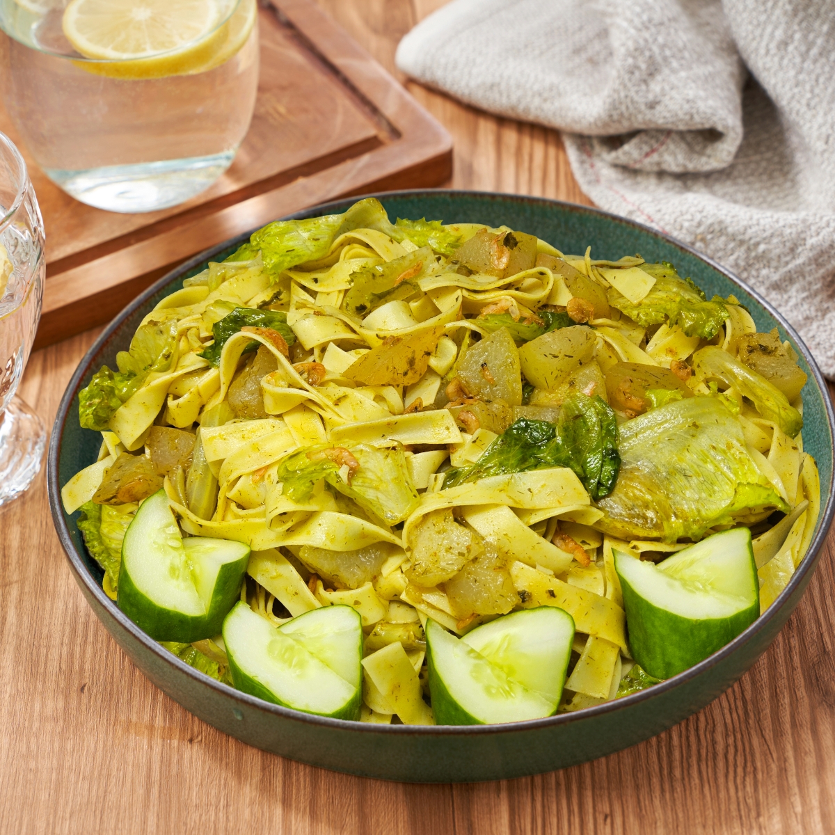 冬瓜のトムヤムクンタリアテッレ互い違い胡瓜を添えて