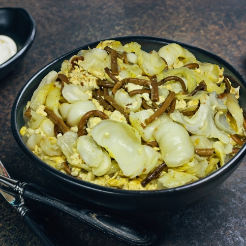 ゆり根ぜんまいキャベツ豆腐土佐ゆづ胡椒梅ポン酢炒め