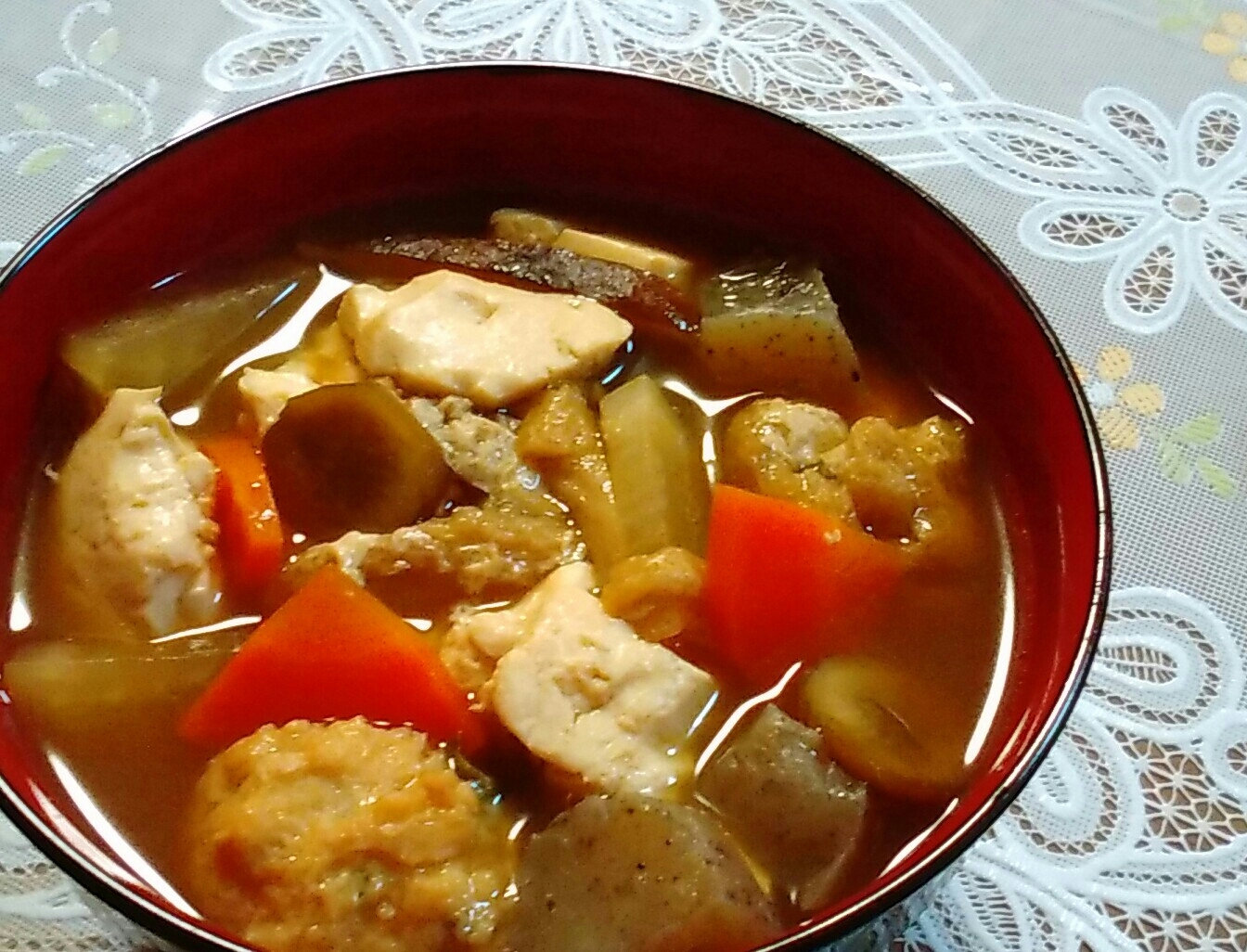 :冷蔵庫にあったモノをちょこちょこ集めて、けんちん汁を作りました。ちょこちょこ入れていたら具沢山な汁になりました。(*^^*)b