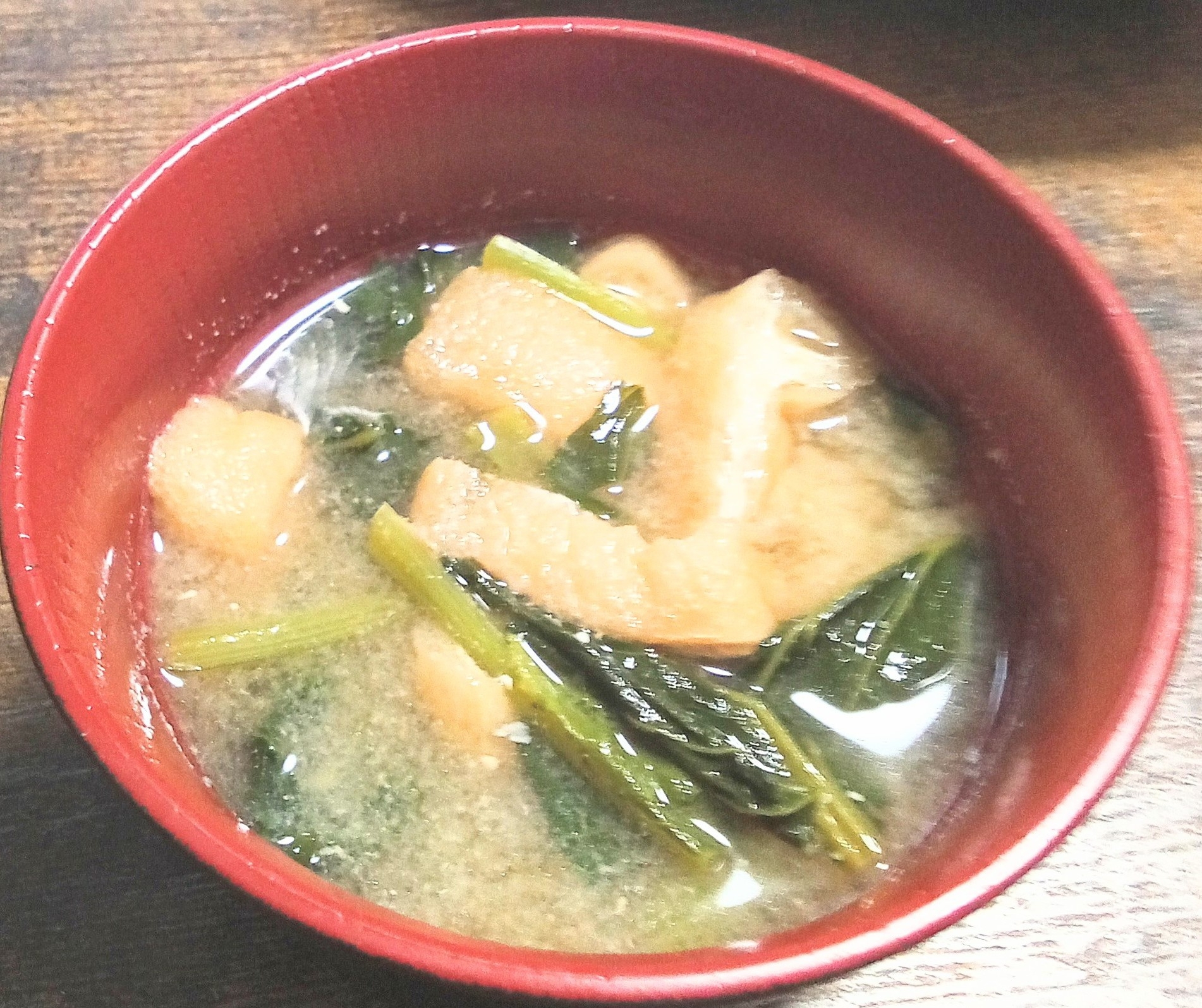今日のお味噌汁!!小松菜と油揚げの簡単お味噌汁