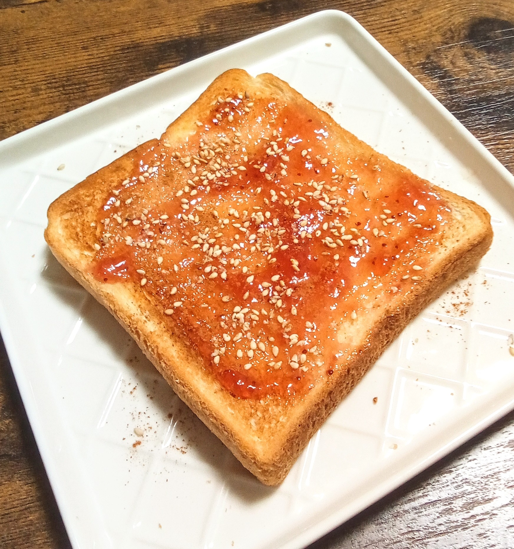 レシピタイトル:今日は甘いトースト。イチゴジャムDeトースト