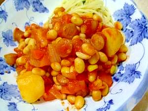 無水鍋でё油不使用!大豆とジャガイモのトマト煮込み