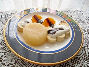 レシピを考えた人のコメント:冷たいシャーベットと甘いチョコとフルーツのおやつ