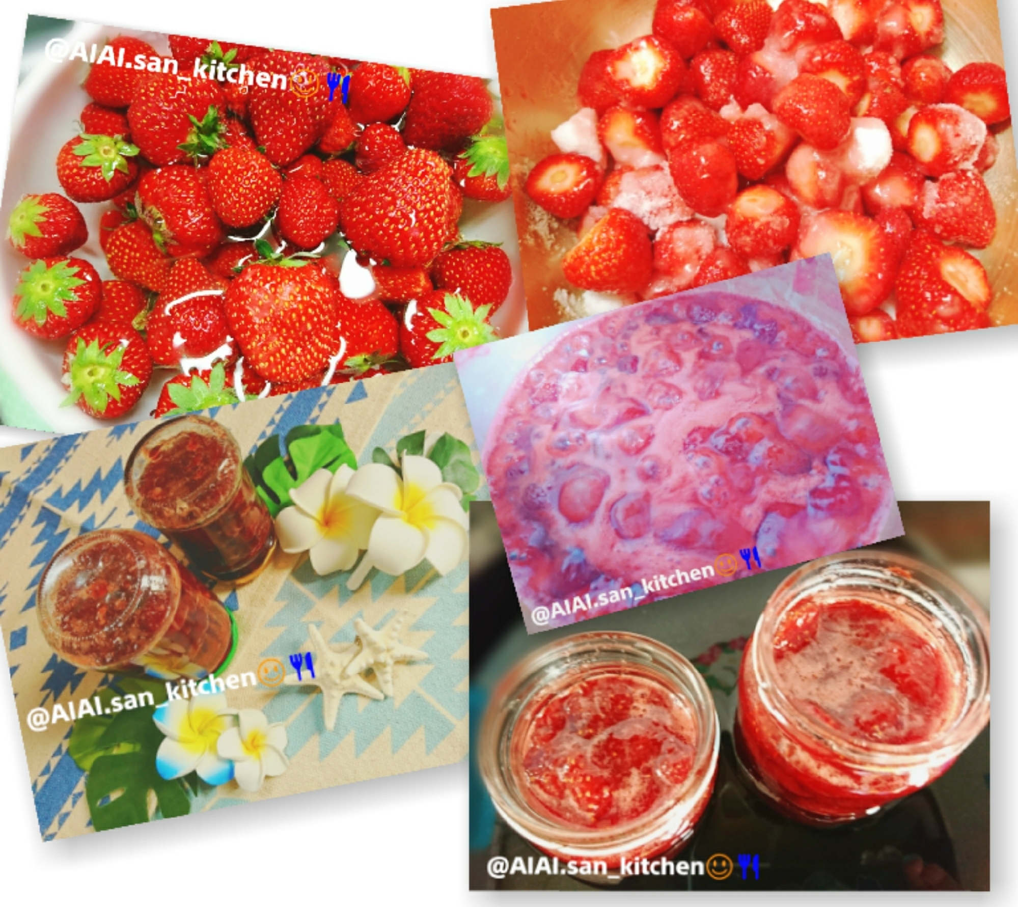 :今回は900gのいちごを使いましたが分量は基本的なわかりやすい分量とポイントが書いてます! 甘さ控えめにする場合は砂糖を30%でしっかり煮詰めてください☆