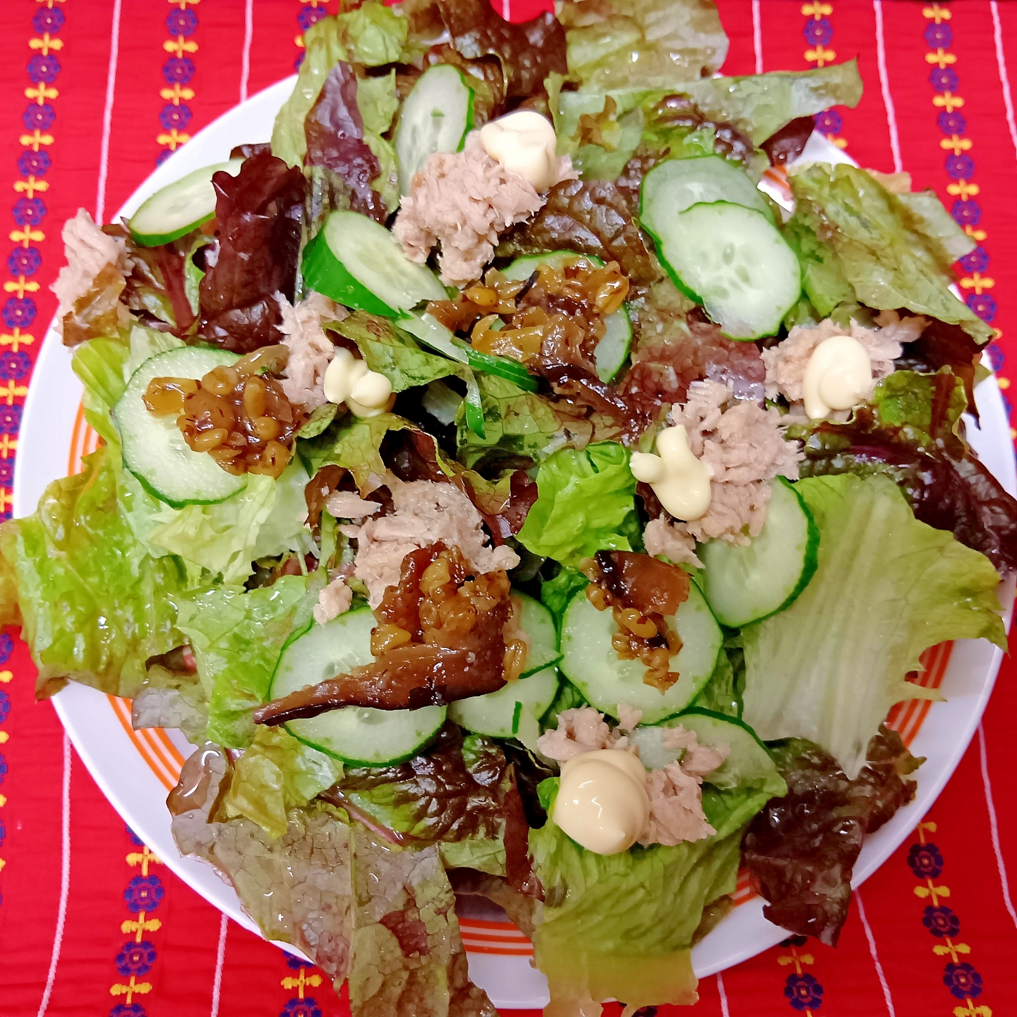 レシピを考えた人のコメント:冷蔵庫にあるものでサラダ