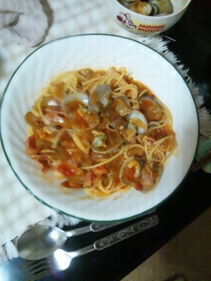 :ミートソースとシーフードMIXで簡単ペスカトーレ