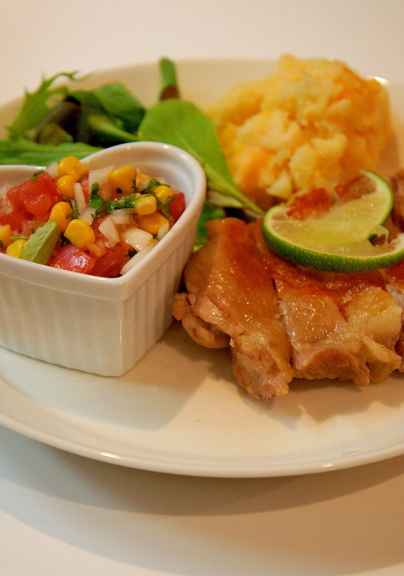 :簡単にお洒落なメキシカンが楽しめます。サルサは「ピコデガヨ」というトマトベースのフレッシュソースです。