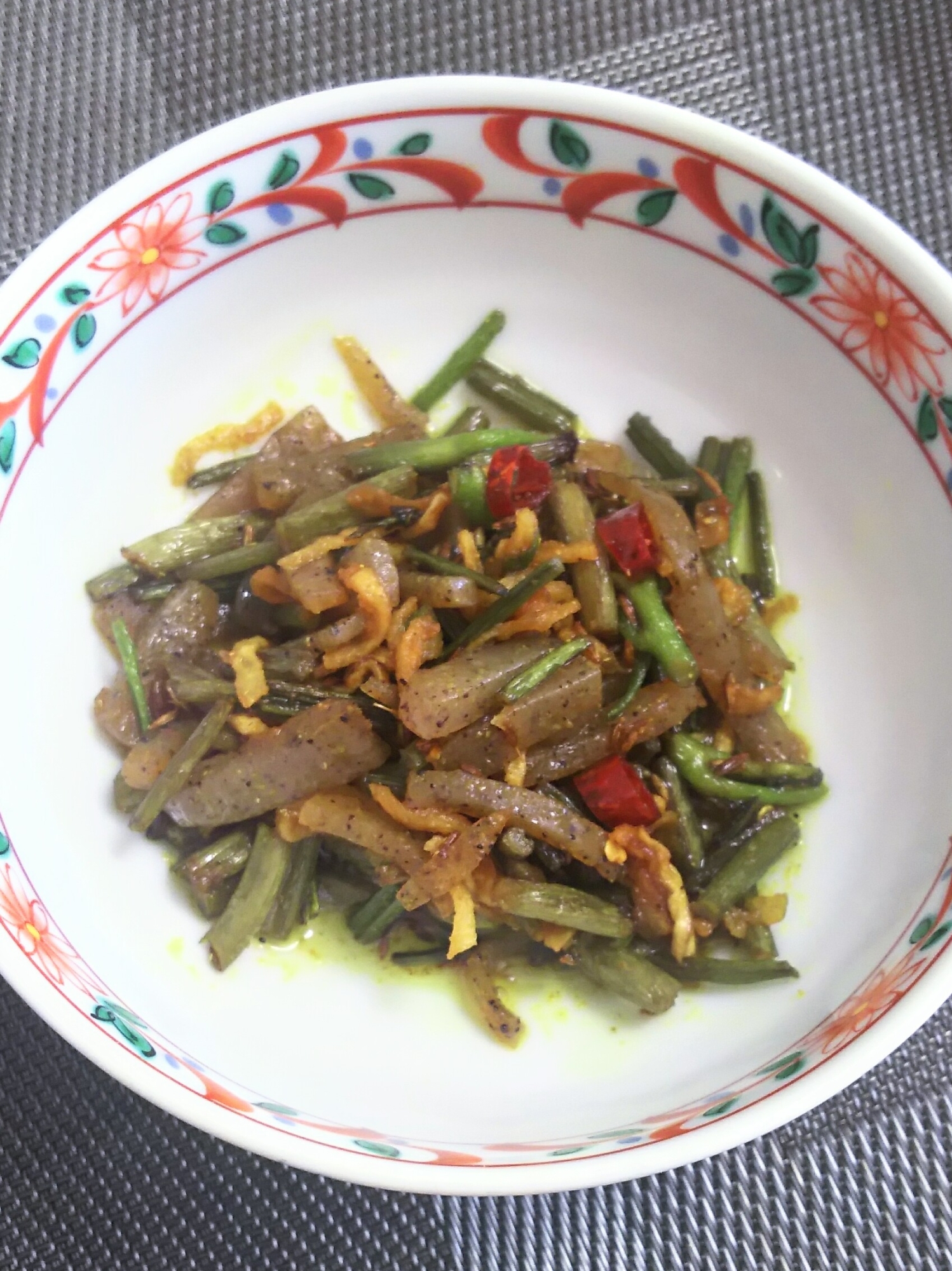 :下処理なし!さつま芋のつるのスパイシーきんぴら
