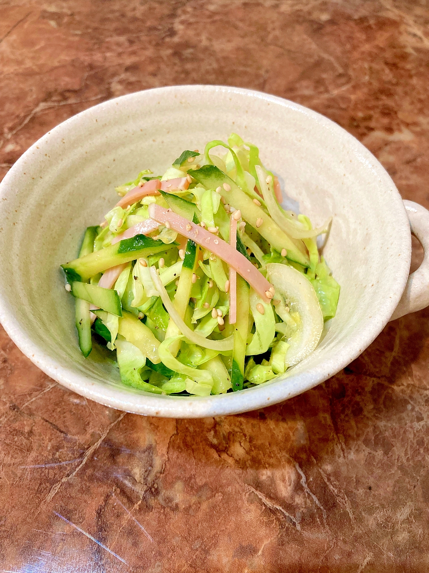 :♦️千切りキャベツとハムのごまサラダ