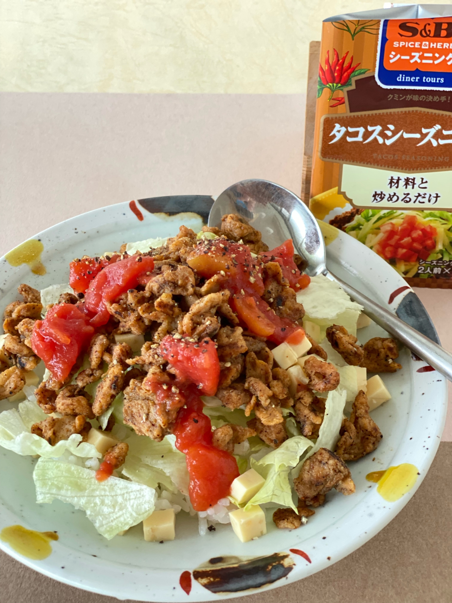 レシピを考えた人のコメント:S&Bシーズニングのシリーズでタコライスにしてみました。