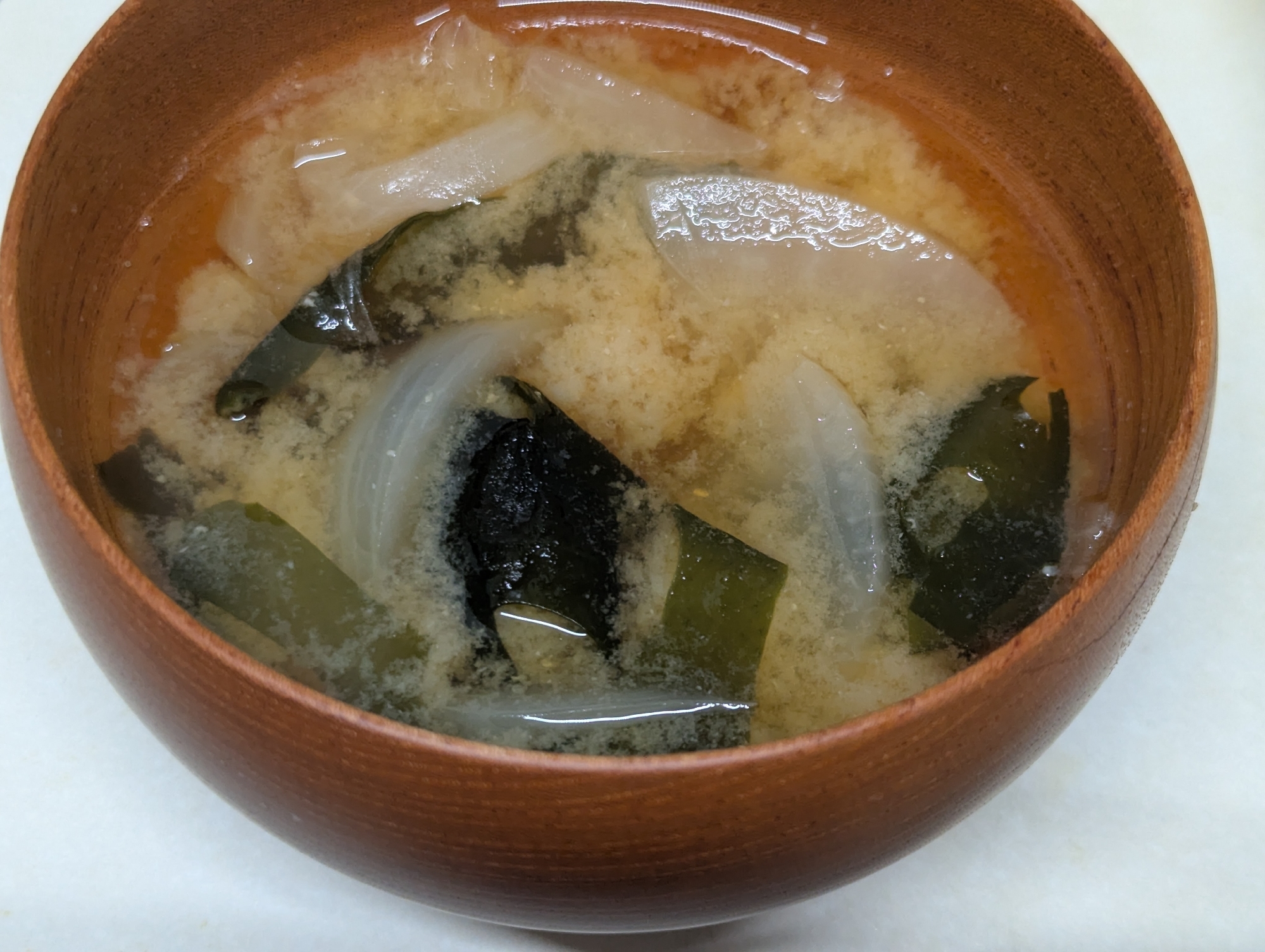 レシピタイトル:大根、たまねぎ、わかめ、のお味噌汁