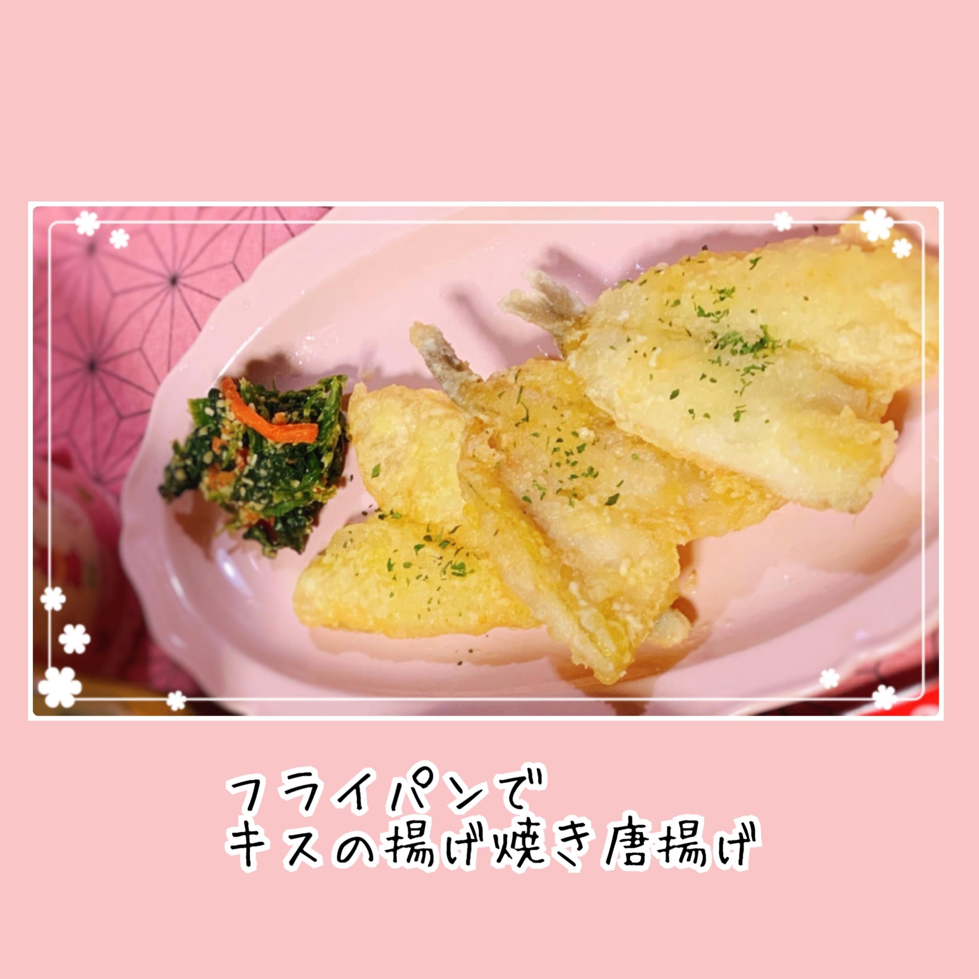 レシピを考えた人のコメント:キスの開きが安かったので買ってみてフライパンで揚げ焼き唐揚げにしてみました♪