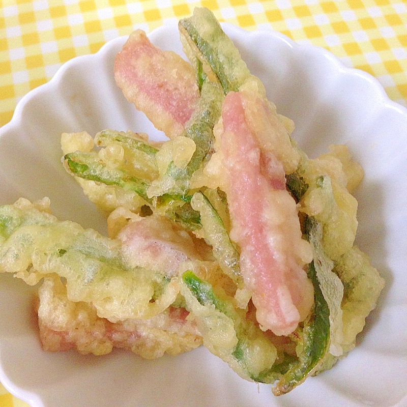 レシピタイトル:インゲンと魚肉ソーセージの天ぷら☆