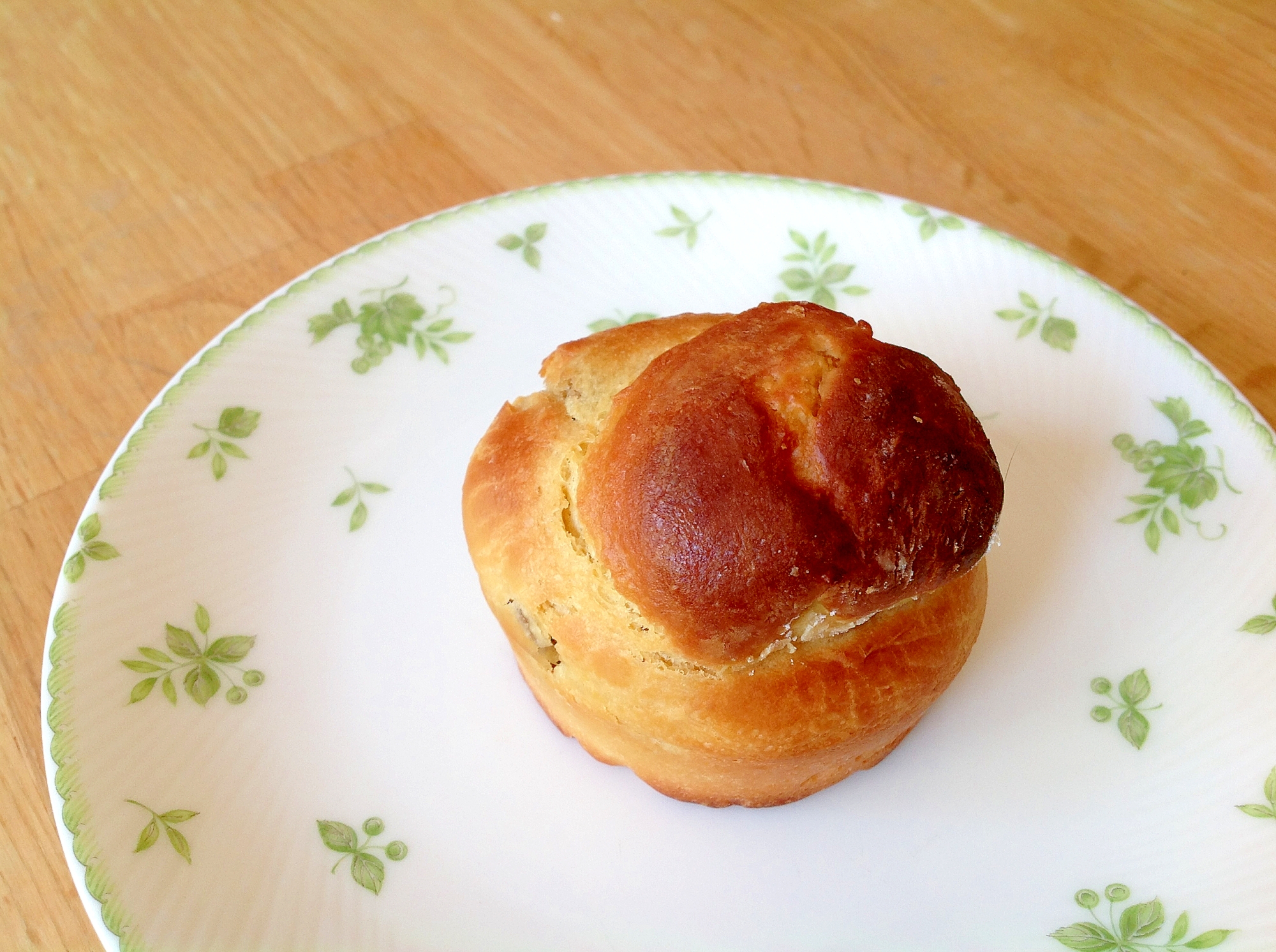:ブランデーに浸したドライフルーツを混ぜ込んだブリオッシュ。 ハンドミキサーのパン捏ね用のアタッチメントをつけて混ぜれば簡単です。