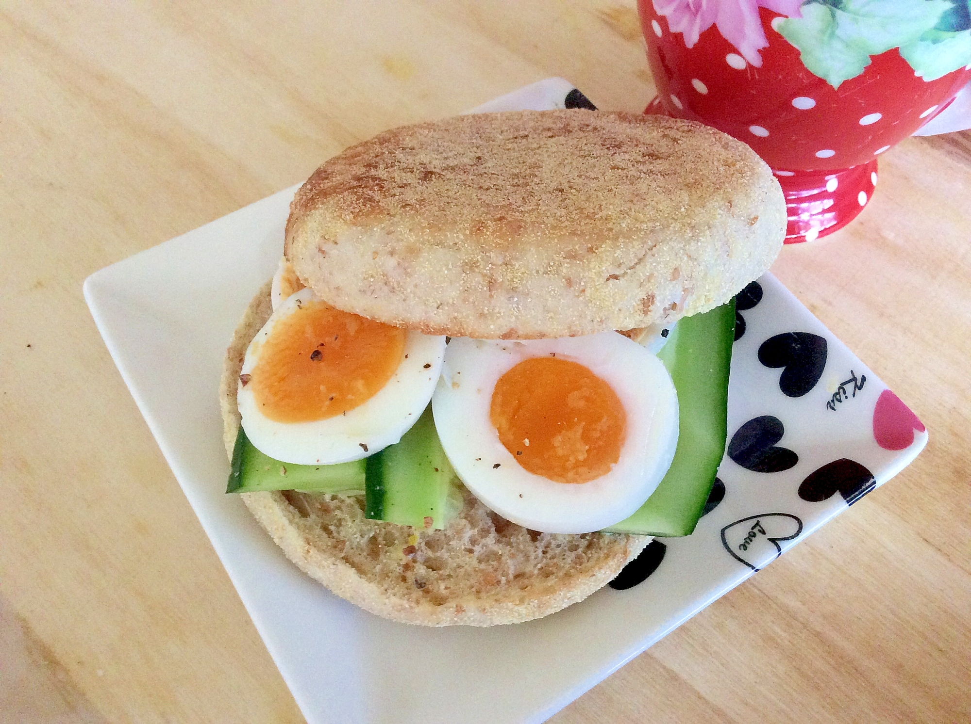 ゆで卵と胡瓜の全粒粉イングリッシュマフィン