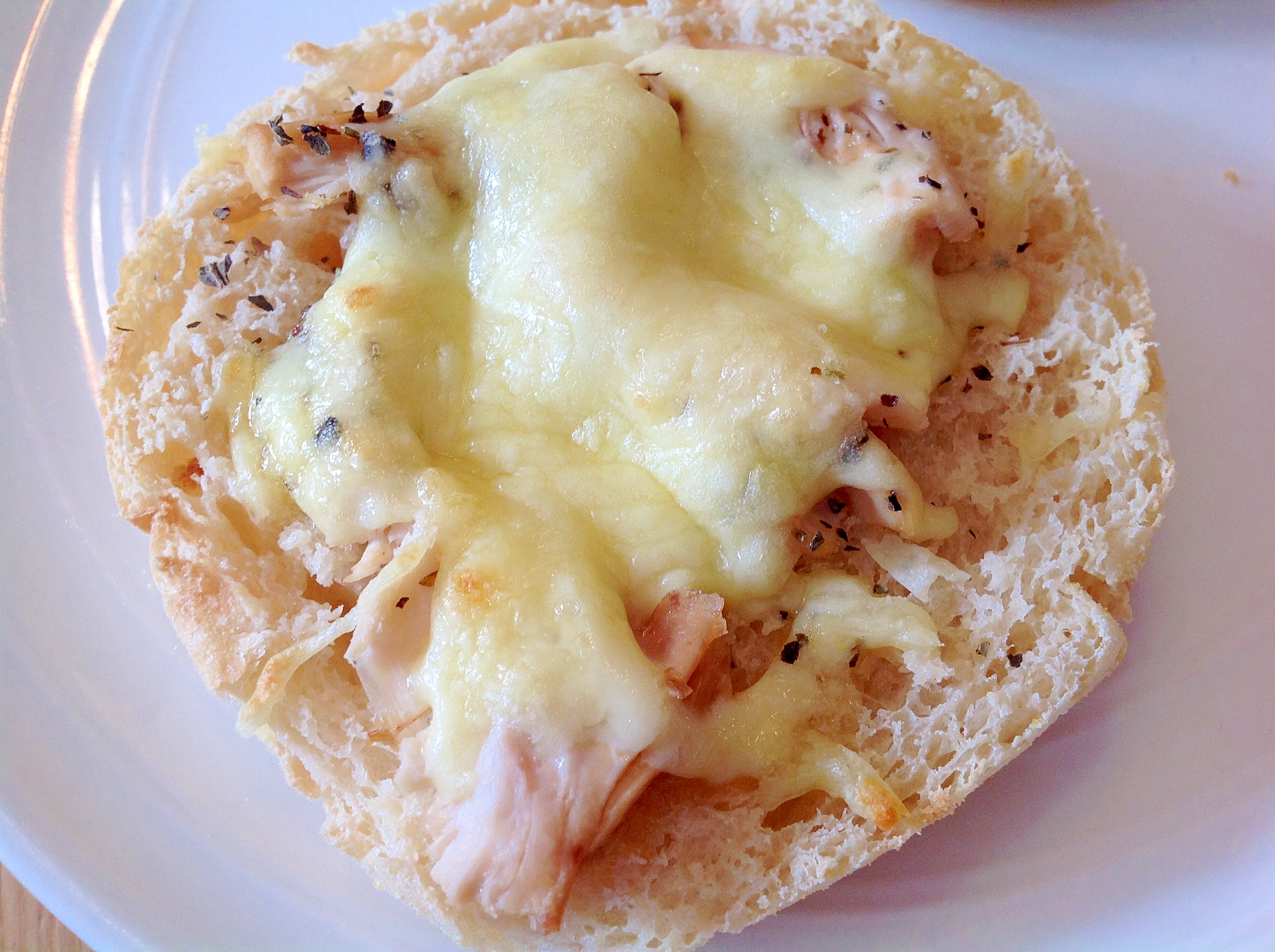 レシピタイトル:イングリッシュマフィンでチキンチーズトースト